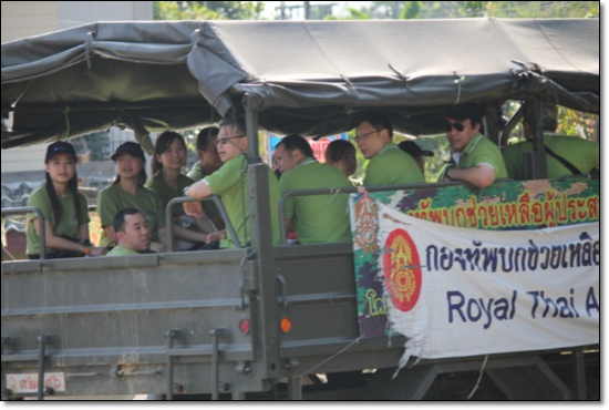 The management and staff took a GMC vehicle from EnCo Building to Suwannaram Temple.